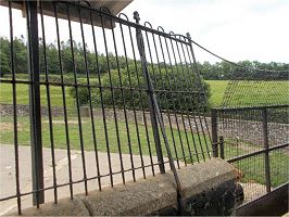 The last image of other railings at this location bear similarity to the document shown in the third image down on the right hand side of this page. These railings have a deliberate slant towards the grassed exercise compound which deters potential escapees!