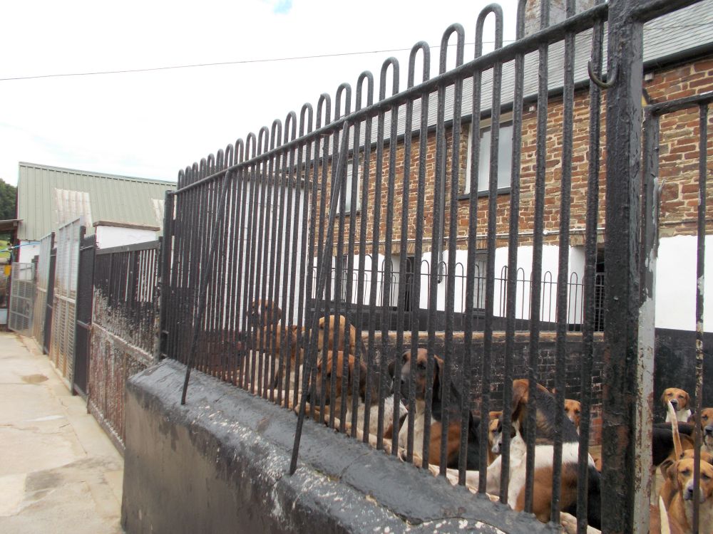 When I visited the Kennels in June 2022 I took these images. The first shows the original gate to the passageway, Kennel No 1 would be immediately to the right as you enter through this gate. This Kennel has survived mainly in the same style as it was originally constructed. The railings are as in the drawing, three quarter inch round bar inserted in a curved 10” cast iron capping to the stone wall giving a 2” gap between bars with a continuous upper horizontal rail and curved top. The iron capping to the stone wall can be seen clearly in the close up image. On the inside generations of hounds have worn the iron capping smooth and shiny, whereas the outside shows the accumulation of paint