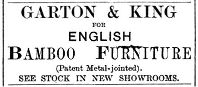 By 1887 normal service has been resumed with the Company having dissolved the partnership with Munk and reverted back to Garton & King. A pointed printed comment in the Express & Echo Advert of the 14th April 1887 (below left) shows and reminds the reader that the firm’s name came into being in 1863 on the death of William Parker Jarvis and the new partner, John Gould King joining the company and renaming the company Garton & King. The extensive and varied amount of Garden Apparatus and Stock is impressive – if only one could go back in time to view what was on offer.