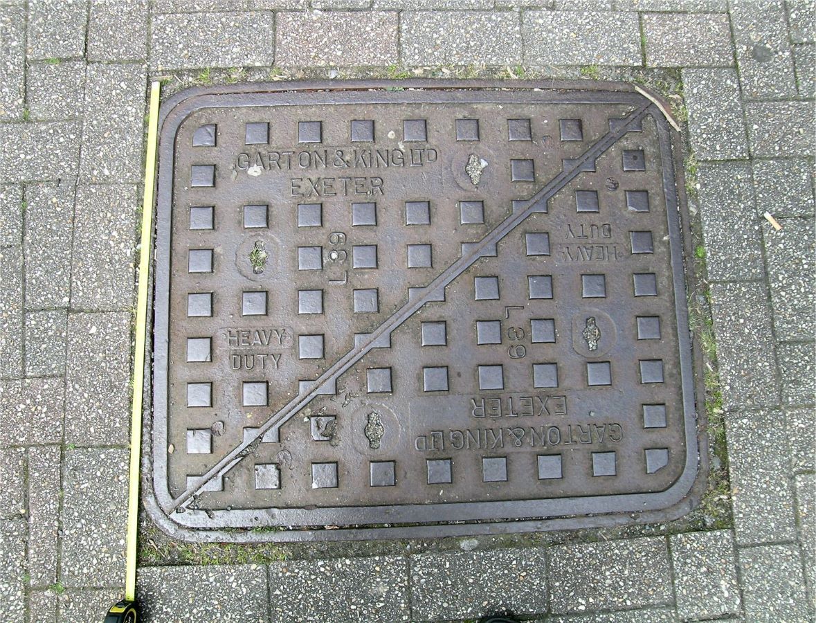 | Manhole Diagonally Split, Square Pattern, Name Top Left 'Exeter'not central |