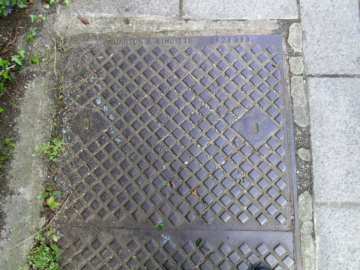 Manhole Diagonally Split Name on both Triangles in longest side EXETER Nr Cleveland St |
